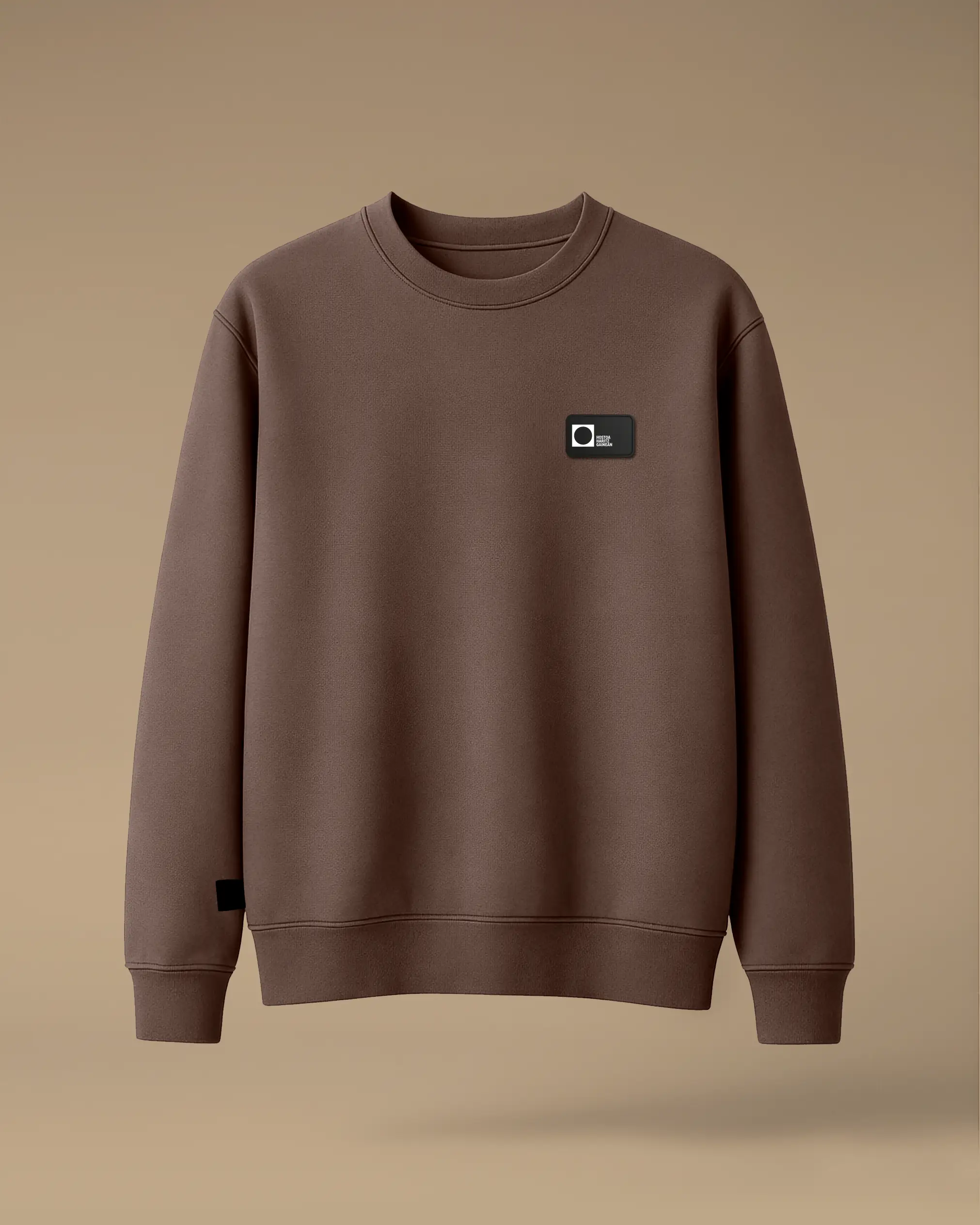 Deskribapena: Kafearen koloreko jertsea. Forma normala. Lepo biribila. Mahuka muntatua. 1x1eko erribetea lepoan, eskumuturretan eta behean. Oihal berdinarekin egindako sendogarria bizkarrean. Bihotz partean jositako gomazko partxea, kolore bakarrekoa. Konposizioa: Felpa pertxatua, %85 Kotoi organiko orraztua eta %15 poliester birziklatua. Garbitutako oihala. Pisua: 280 GSM