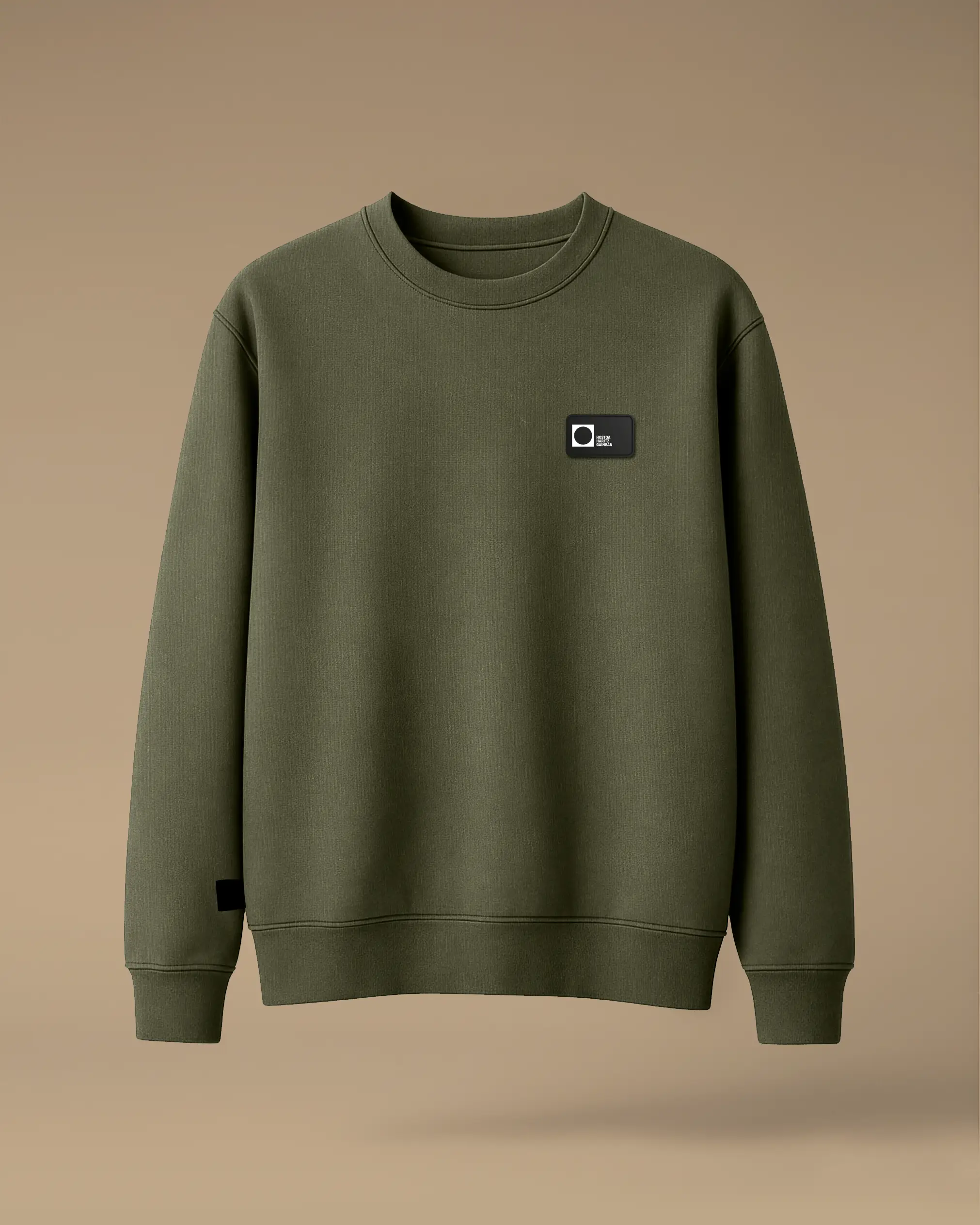 Deskribapena: Tonu berdexka duen jertse tindatua. Forma normala. Lepo biribila. Mahuka muntatua. 1x1eko erribetea lepoan, eskumuturretan eta behean. Oihal berdinarekin egindako sendogarria bizkarrean. Bihotz partean jositako gomazko partxea, kolore bakarrekoa. Konposizioa: Felpa ez pertxatua, %100 Kotoi organiko orraztua. Garbitutako oihala. Pisua: 300 GSM