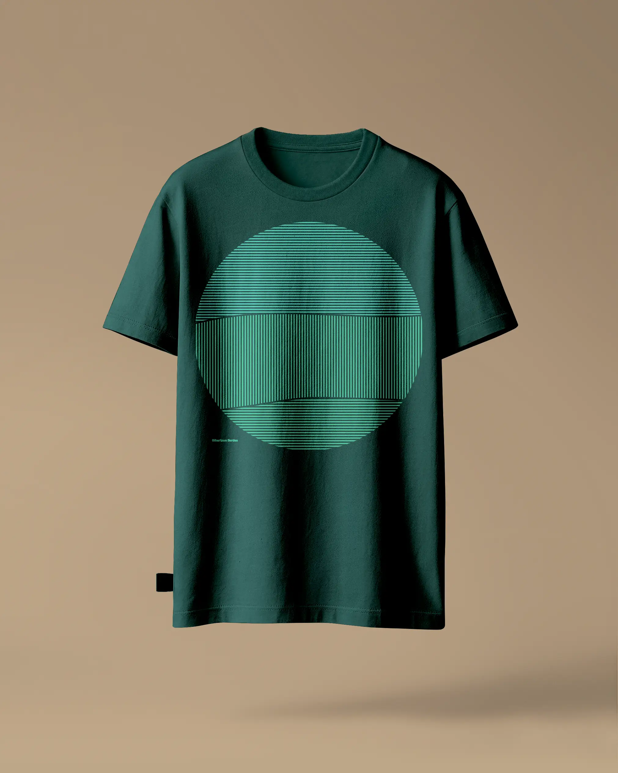Deskribapena: Berde ilun koloreko kamiseta. Forma normala. Lepoko barne-zinta oihal berean. 1x1eko erribetea lepoan. Ur-oinarria duten tintekin serigrafiatua, bi koloretara, PVC eta ftalato gabe. Konposizioa: Jersey puntu sinplea, %100 kotoi organikoa, garbitutako oihala. Pisua: 180 GSM